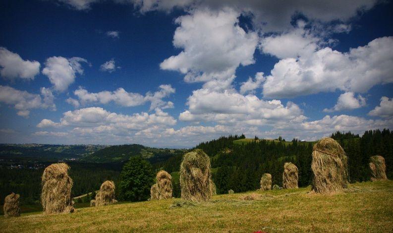 Nieroz sie zdarzało, ze koń ni móg wyciongnąnć wozu na wiyrch gronia, to trzeba było siano ciągnąć samociąż na gałynziak na doł. Siano było wionzane w batogi w trownicy. Jak sie juz skosiło, łodrosła  na nowo trowa, łosprzestrzeniło sie kolie sopki było próżno, to przygoniali krowy ze wsi na stowani (bacowani).