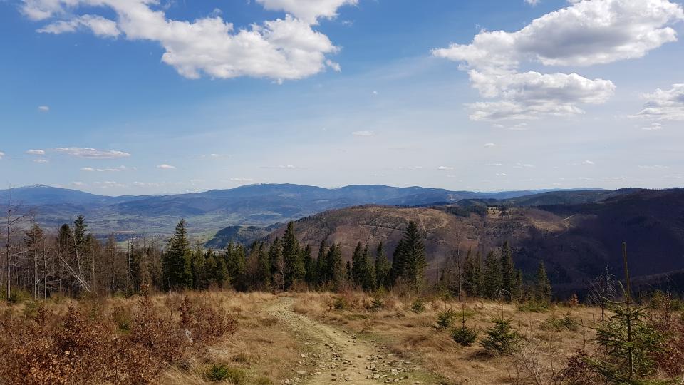 To doskonałe miejsce na odpoczynek i regenerację sił, jako że dalej czeka nas kolejne strome podejście przez dosyć kamienisty odcinek szlaku już do szczytu Skrzycznego. Rekompensują go jednak piękne widoki na Beskid Żywiecki.